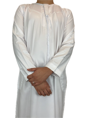 Sa teinte crème douce et intemporelle confère une allure élégante, tout en restant fidèle à un style modeste et épuré. Ce vêtement allie confort et distinction, idéal pour toutes les occasions, qu’elles soient formelles ou décontractées.